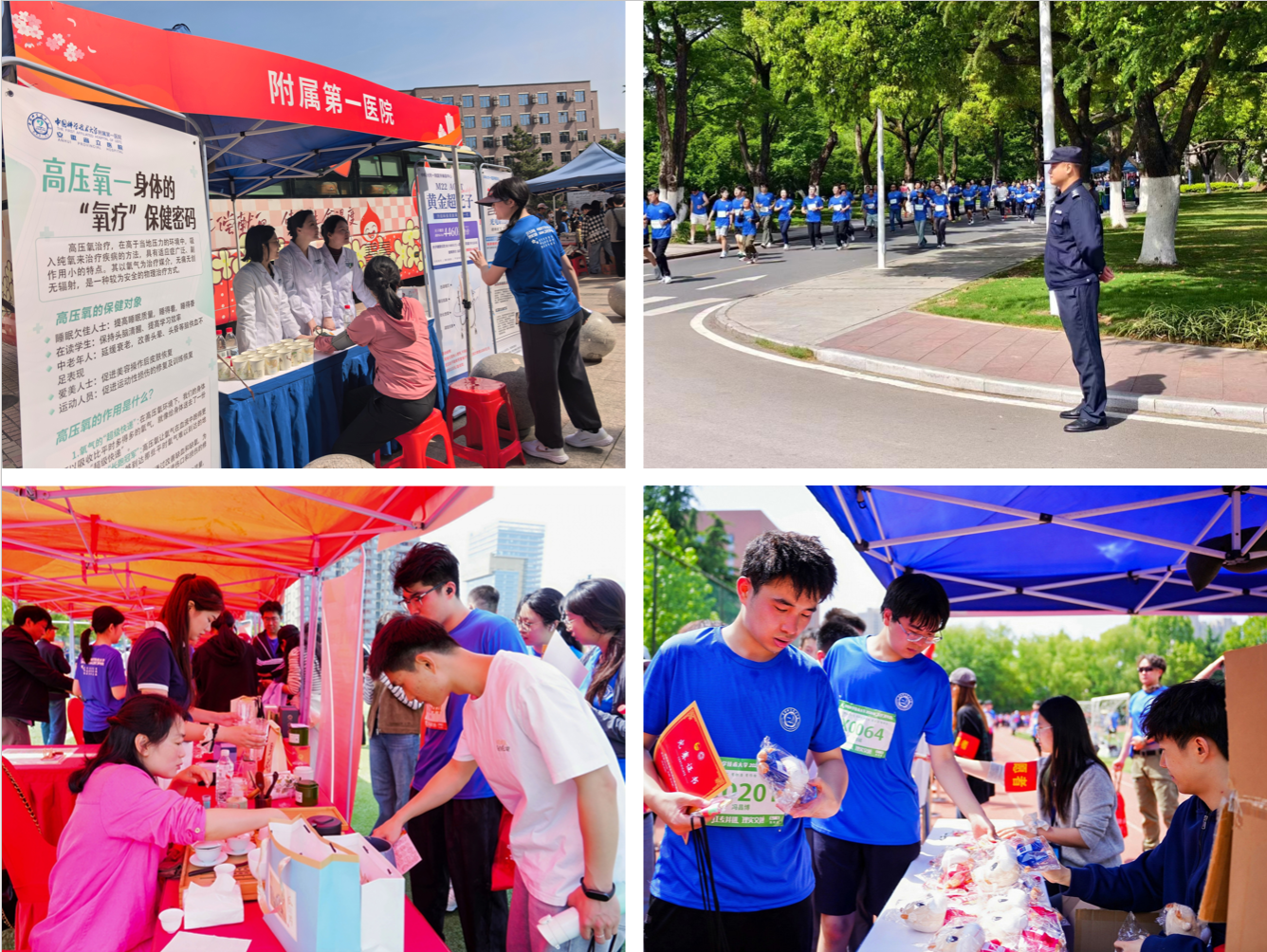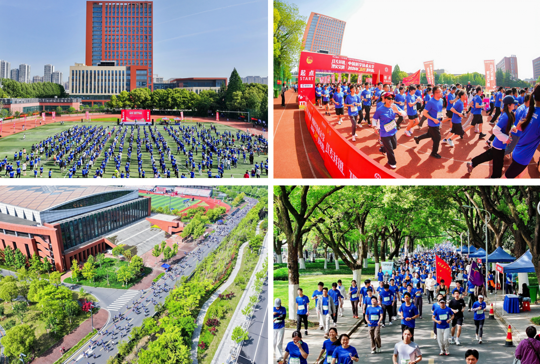 春和景明,万物竞发。9时许,随着主裁判的发令汽笛鸣响,两校区师生冲出起跑线,在春日校园中汇成一道跃动的青春风景线。赛道沿途精彩不断:各院系与机关设置的主题宣传补给点、“科学薪火·接力站”依次排开,为跑者们补充能量的同时带来知识与趣味互动;西区国家同步辐射实验室门口与高新校区北段的“律动心声·加油站”乐声激昂,由校学生山南说唱社、炫音社的现场驻唱让奔跑的脚步与节拍同频共振;校医院与附属第一医院的医疗跑团全程随行,为每一位跑者保驾护航。